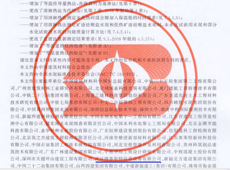 我公司是新水化热国标GB/T12959-2024《水泥水化热测定方法》的起草制定单位。