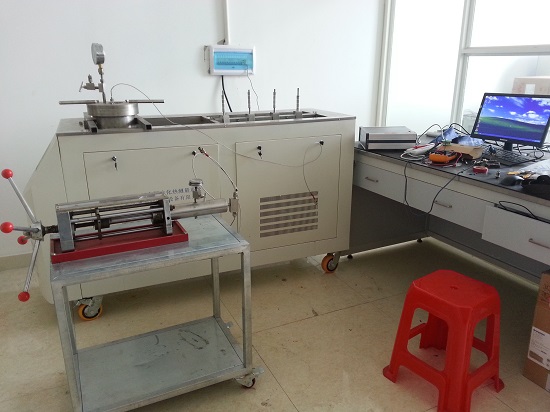 我公司成功为长江大学石油学院研发特种低温加压水泥水化热测量系统,长江大学石油学院有丰富的石油项目检测经验,为石油石化单位培养了大批检测试验人员。这次客户设计要求模拟海底可燃冰的深井水泥水化热情况,低温设计为0度,试验样品压力设计要求达到超高压30Mpa ,在国内没有类似设备参考的情况下具有相当大的技术难度 ,经过公司技术人员和用户以及协助单位多方探讨和试验,终于排除困难成功交付国内第一套模拟地层环境水泥水化热测量系统。
